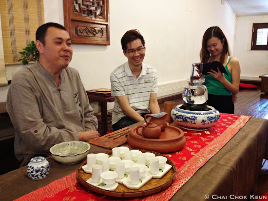 Master Kang went through with us the tedious steps of warming the tea set and the come about of their in house Imperial Huangjin Gui (御用黄金桂). We were also taught the different way of holding the tea cup by both male and females, the correct way to hold the teapot cover, as well as the various type of Zisha Teapots / Purple Sand Pots(紫砂壶).The Huanjin Gui was served to Queen Elizabeth II during her visit to Tea Chapter in 1989, as she belongs to the Imperial Family, so their in house Huanjin Gui was renamed as Imperial Huangjin Gui after that.